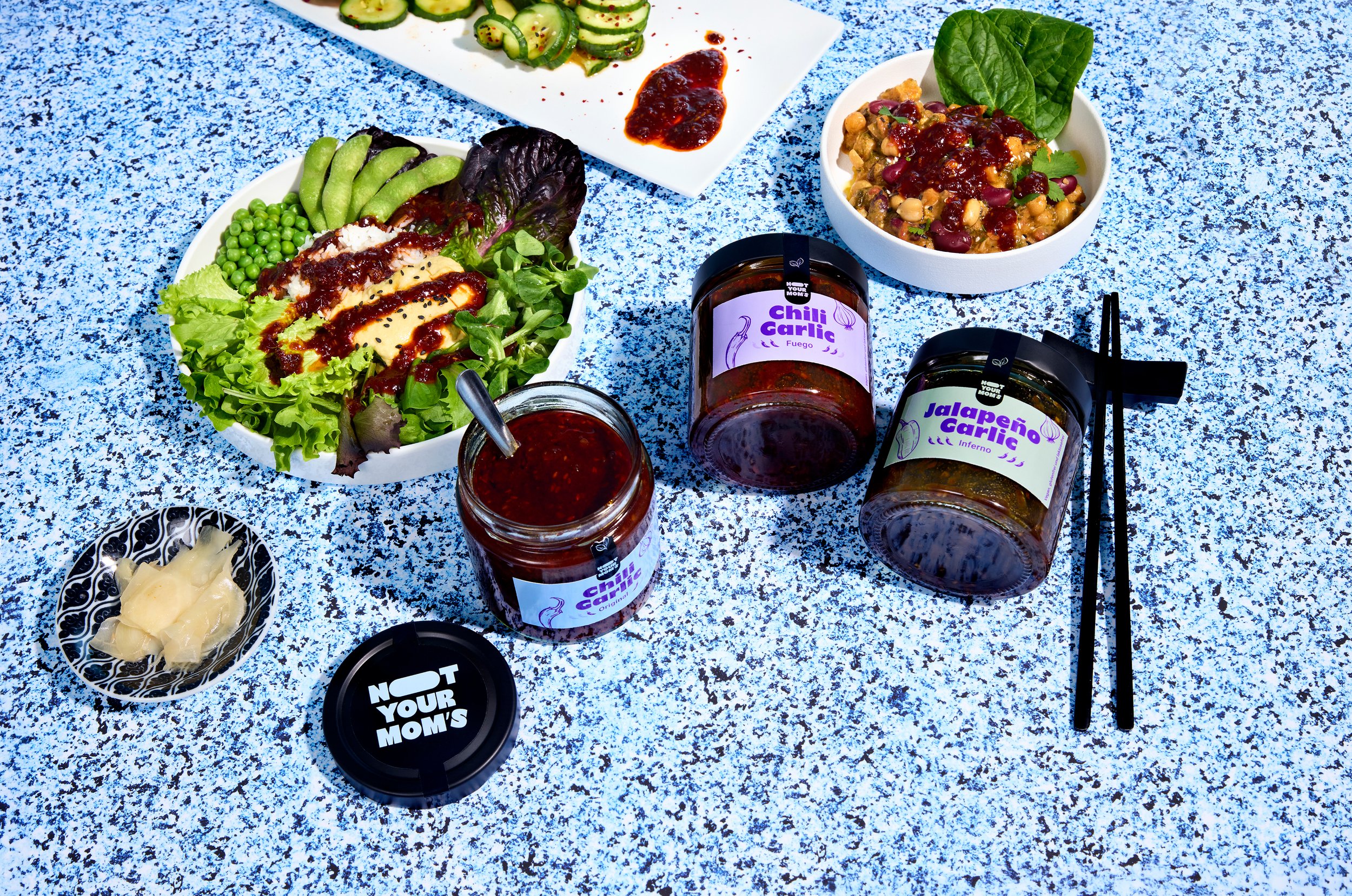 Und während Ihr Eure Speisen mit unseren Köstlichkeiten verfeinert, tüfteln wir schon an weiteren Rezepten. Eines haben alle unsere Produkte gemeinsam: Sie sind vegan. Sie sind anders. Sie sind besser – und Ihr kennt sie so garantiert noch nicht von Zuhause. Not Your Mom's eben!