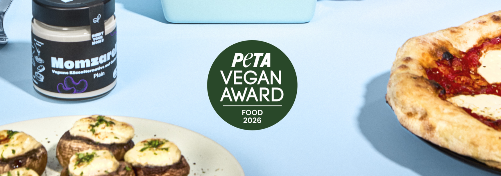 Überzeugt hat all das auch PETA, Deutschlands größte Tierrechtsorganisation, die unseren leckeren Momzarella mit einem ganz besonderen Preis, dem "PETA Vegan Food Award", in der Kategorie "Beste vegane Käsealternative 2026" prämiert hat, worauf wir natürlich ganz besonders stolz sind.